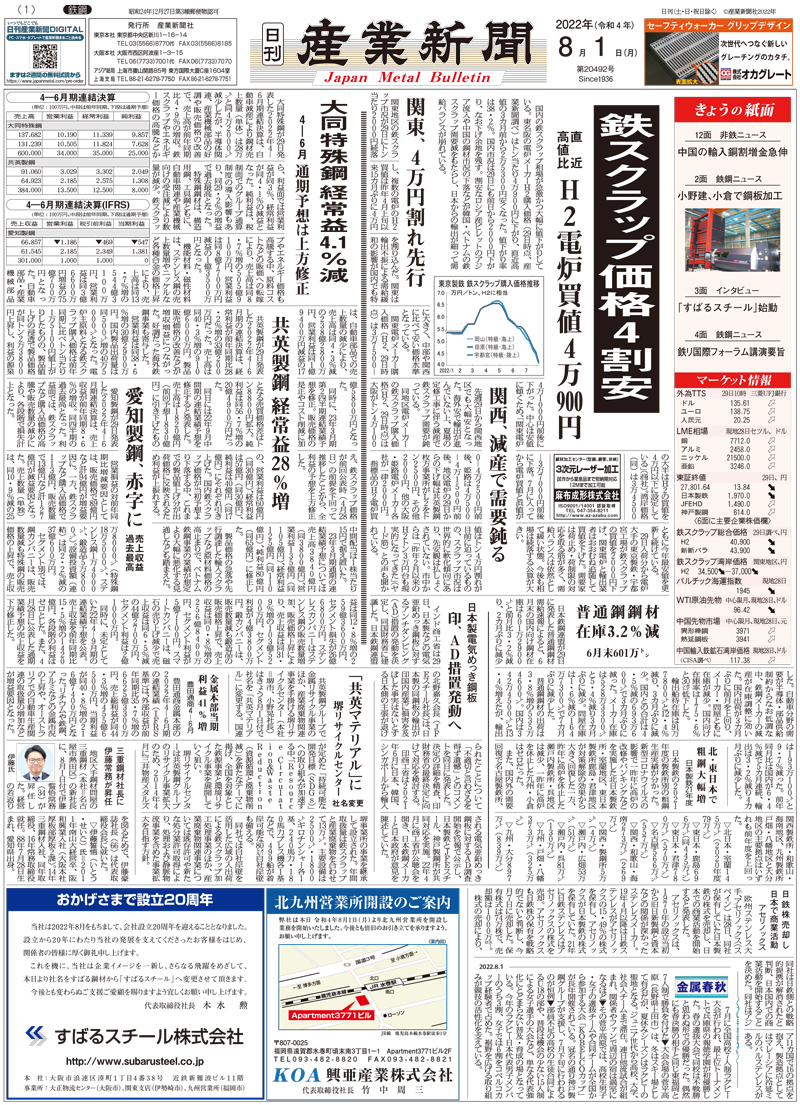 22年08月01日2022年8月1日付紙面PDF(緊急時対応)