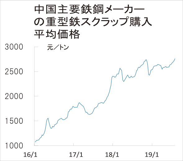 19年08月07日中国、鉄スクラップ急伸 過去6年余で最高値