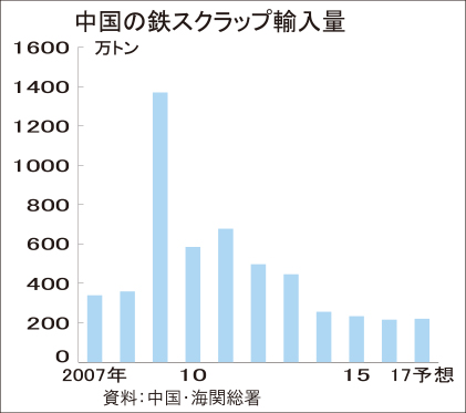 17年12月28日中国、鉄スクラップ輸入減 下期、地条鋼排除で余剰