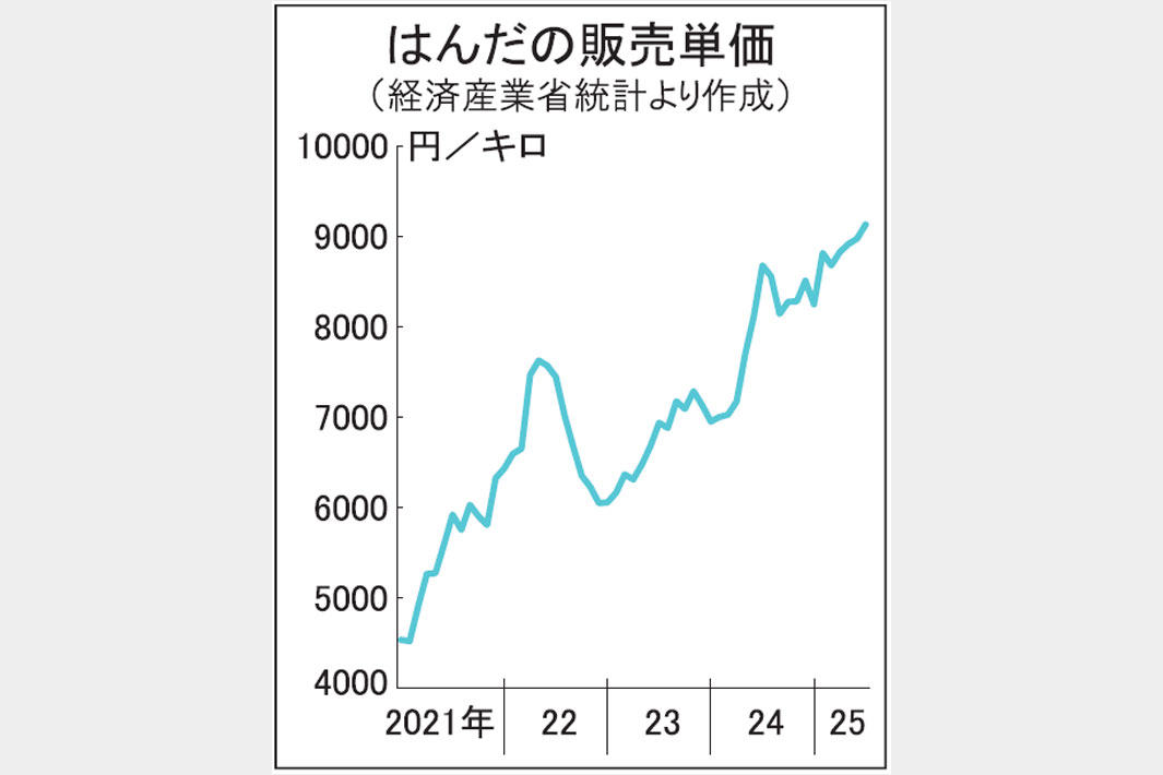 25年09月16日はんだ単価 4年半で2倍 7月、初の9000円台乗せ