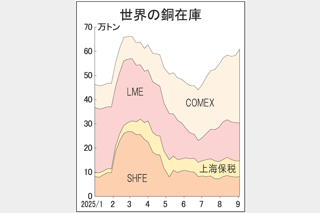 25年09月11日銅在庫、米で30万トン突破