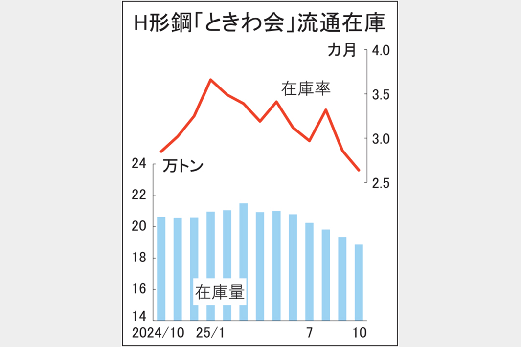 25年11月19日ときわ会10月末 H形鋼在庫19万トン割れ 2年ぶり