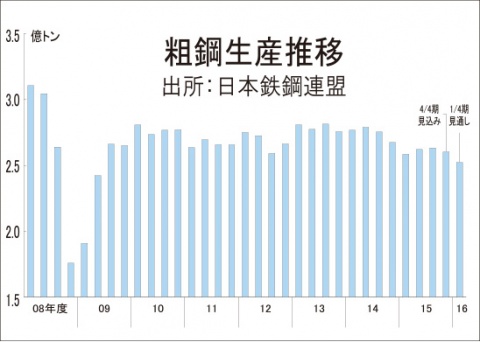 16年04月13日新日鉄住金・鹿島、15年度粗鋼5%減