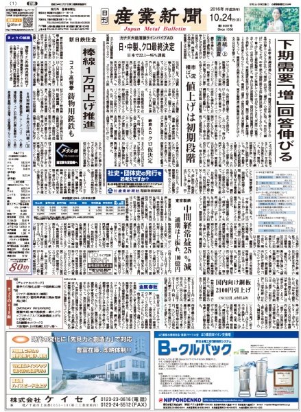 16年10月24日2016年10月24日付紙面PDF(緊急時対応)