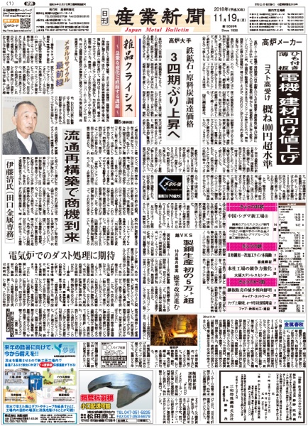 18年11月21日2018年11月19日付紙面PDF(サンプル)