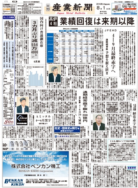 16年08月01日2016年08月01日付紙面PDF(サンプル)