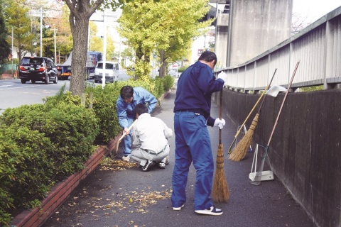 15年11月12日浦安鉄鋼団地でクリーン大作戦 落ち葉拾いに汗流す