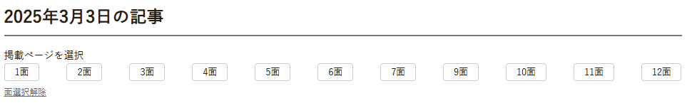 - STEP1でクリックした日付のニュースが一覧で表示され、面ごとの記事一覧表示も可能