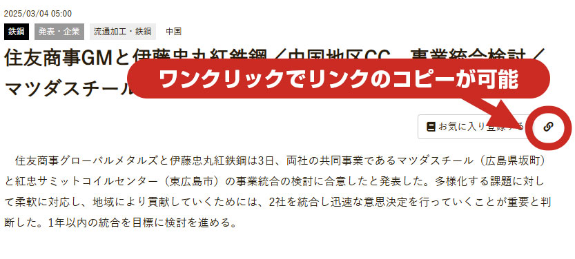 - リンクのコピーボタンをクリックし、共有したい相手に送付する
