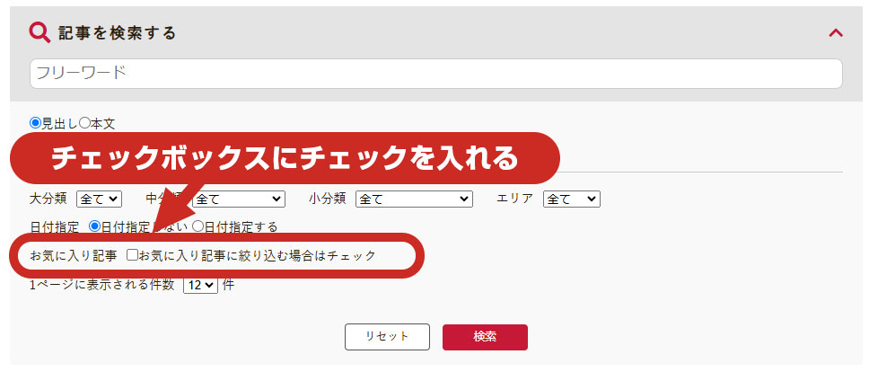 - 「お気に入り記事」の「お気に入り記事に絞り込む場合はチェック」にチェックを入れる