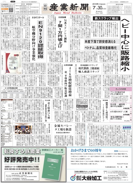 2018年7月30日付紙面PDF(緊急時対応)