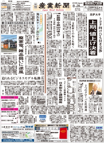 10月から月1万2000円(税別) 電子版単独は据え置き 産業新聞社は10月1日から本紙「日刊産業新聞」の購読料を月額1万1000円(消費税含まず)から1万2000円(同)に改定させていただきます。本体価格の改定は2021年10月、約45年ぶりに1000円の値上げを実施して以来、4年ぶりとなります。...more