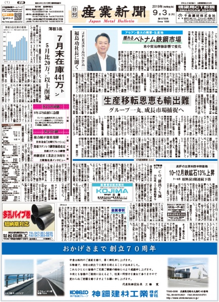 10月から月1万2000円(税別) 電子版単独は据え置き 産業新聞社は10月1日から本紙「日刊産業新聞」の購読料を月額1万1000円(消費税含まず)から1万2000円(同)に改定させていただきます。本体価格の改定は2021年10月、約45年ぶりに1000円の値上げを実施して以来、4年ぶりとなります。...more