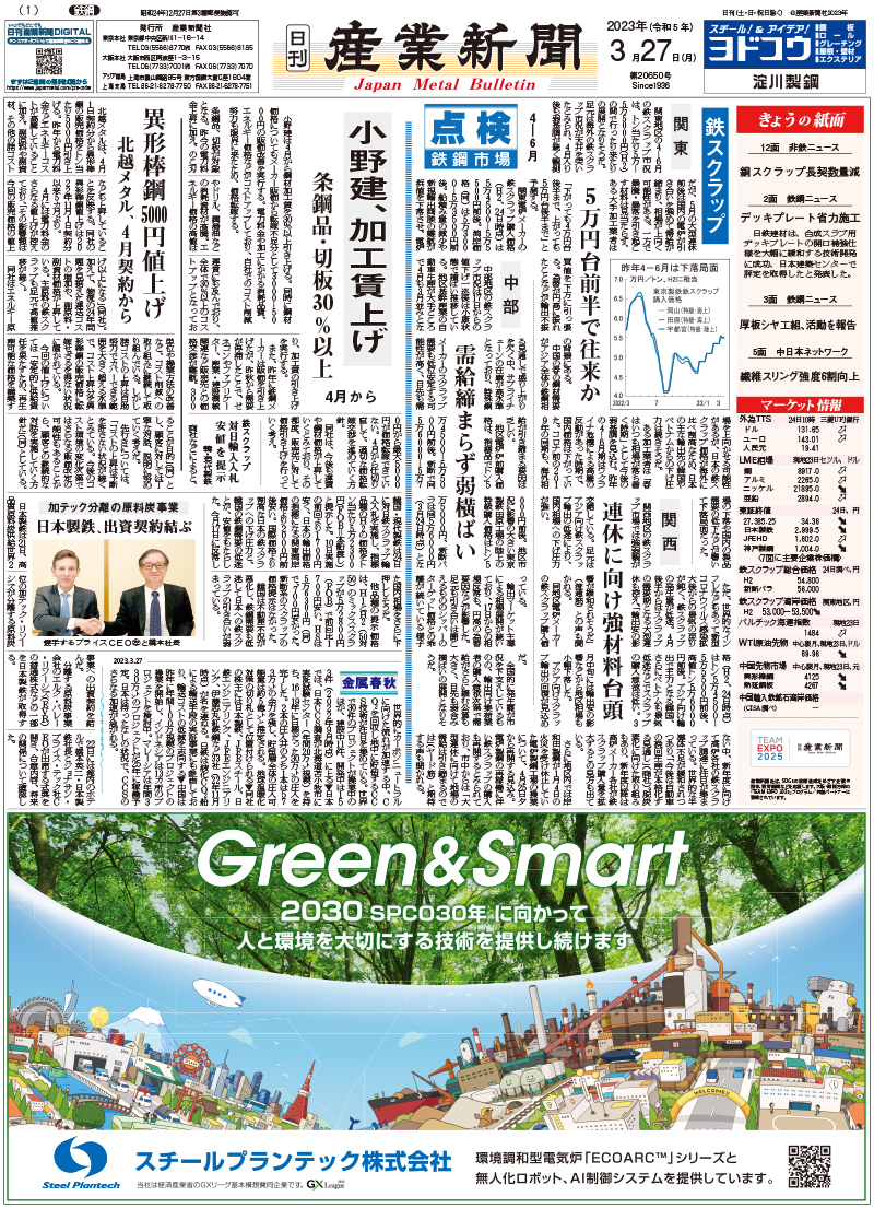 10月から月1万2000円(税別) 電子版単独は据え置き 産業新聞社は10月1日から本紙「日刊産業新聞」の購読料を月額1万1000円(消費税含まず)から1万2000円(同)に改定させていただきます。本体価格の改定は2021年10月、約45年ぶりに1000円の値上げを実施して以来、4年ぶりとなります。...more