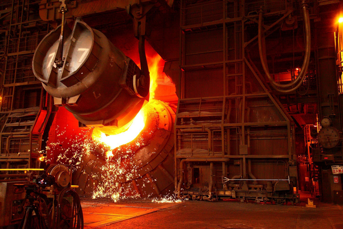 新報国マテリアル三重工場 溶解炉の出鋼のようす