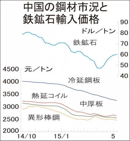 中国鋼材市況、再び下落