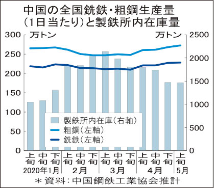 中国 粗鋼急増 年率10億トンに 5月上旬