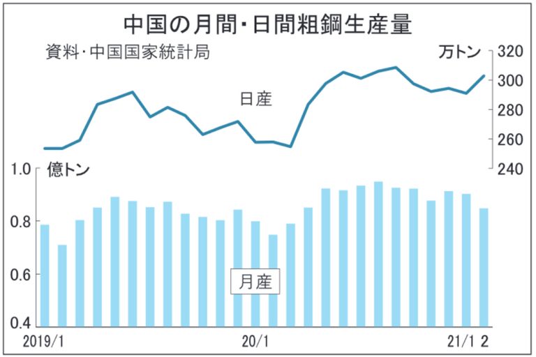 中国 粗鋼生産量、1―2月過去最高1.7億トン