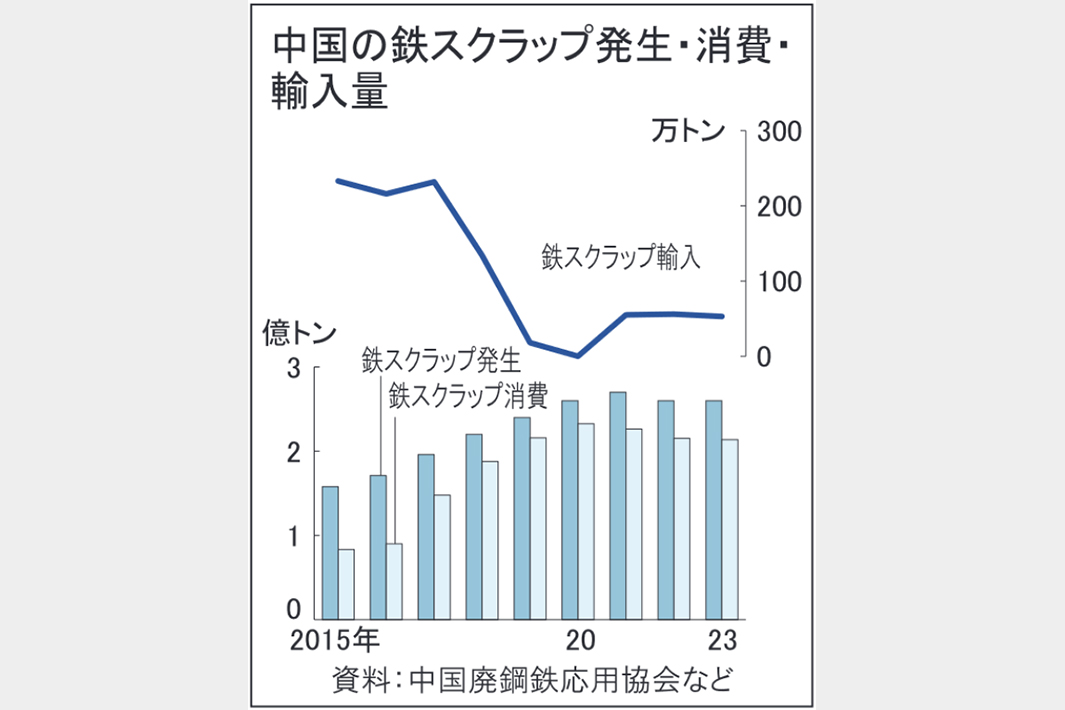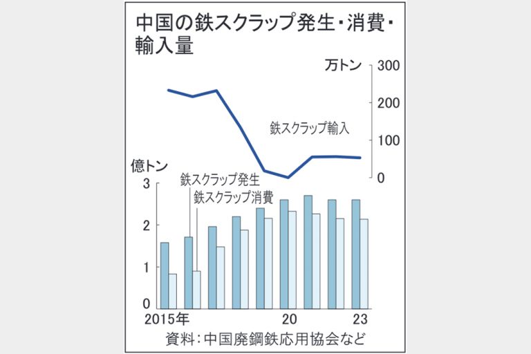 中国鉄スクラップ消費大幅増 コスト高、電炉鋼比率伸びず 電気料金や品質が課題
