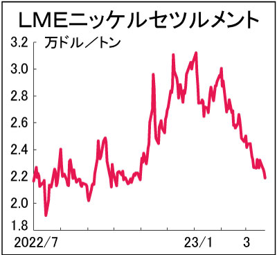 LMEニッケル続落 5カ月ぶり安値