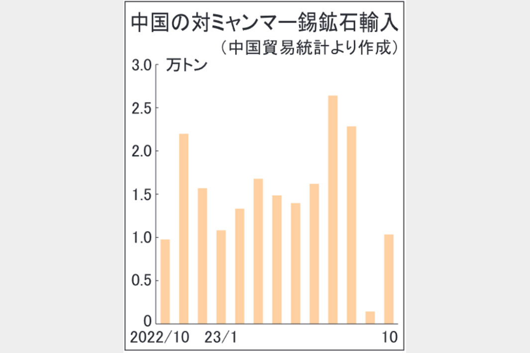 ミャンマー錫鉱規制緩和 対中国輸出急回復