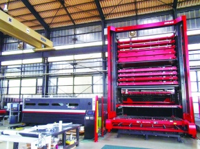 レーザ加工業のインスメタル(本社=千葉県浦安市鉄鋼通り、福井英人社長)はこのほど、本社工場のファイバーレーザ切断機に高速パレットチェンジャー(材料供給・搬出装置)を導入し、夜間など自動運転時の加工能力を大幅に増強した。素材パレットをケース対応とし、材料1枚取り機能を搭載したことで、従来十数枚だった自動運転時の加工能力は最大100枚以上となった。生産性が飛躍的に高まったことを生かし、精密加工品の大ロット受注獲得を目指す。