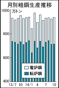 全国粗鋼、2カ月連続減936万トン