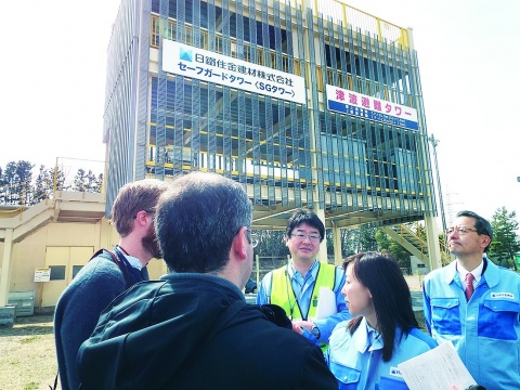 日鉄住金建材・仙台製造所、国連防災会議で視察 津波避難タワーなど紹介