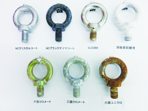 浪速鉄工(本社=大阪市港区、堀川忠彦社長)は、表面処理加工および同処理設備の販売を行う木田精工(本社=東大阪市、木田潔社長)と共同で、新たな高耐食性合金めっき「NCクリスタルコート、NCブラックダイヤコート」を施したアイボルトやターンバックル等の本格販売を開始する。鉄素材に3層めっきの同処理を施すことで、ステンレス鋼と同等以上の耐食性を実現したもので、現在、特許出願中。販売元は浪速鉄工で、めっき加工については木田精工が行う。
