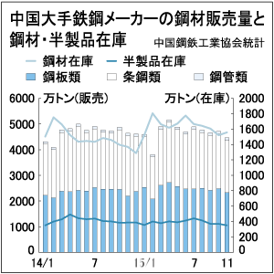 中国鉄鋼企業、製鉄所内在庫膨らむ 11月末14%増の1557万トン