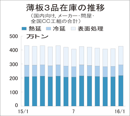 薄板3品在庫、1月末427万トンに急増 需要の弱さ想定以上