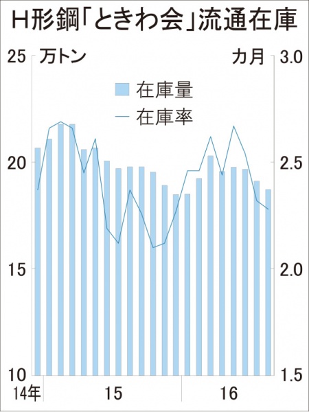 ときわ会H形在庫 8月末適正化、18.7万トン