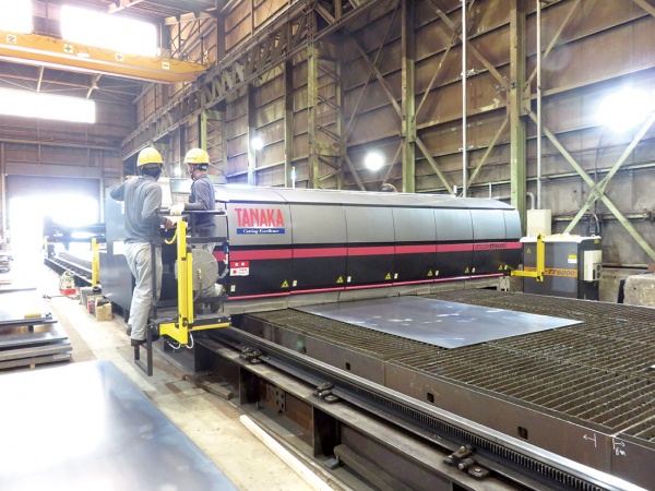 阪和興業系の鋼板総合加工会社のダイコースチール(本社=大阪市住之江区、唐川吾郎社長)は先月下旬、本社工場にファイバータイプのレーザー加工機1基を初導入し、5月から本格稼働させた。導入設備は日酸TANAKA製の「FMR2 35L―TF6000」で、投下金額は1億円強。今回の設備導入により、同社のレーザー加工機は既存のCO2タイプと合わせて6基体制となった。レーザー加工機が現状フル稼働となっており、これを解消させ、今後のレーザー加工増への対応強化と、さらに小径の穴開け加工の高速化・高精度化を図るのが狙い。レーザー加工量については今後、現状比10―20%増の月間1000トン以上に引き上げていきたい考え。