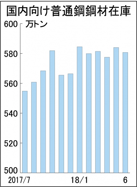6月末国内向け普通鋼在庫 2カ月ぶり減581万トン