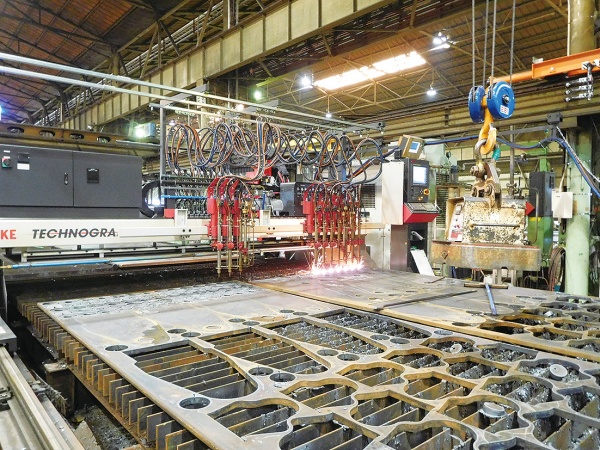 新日鉄住金グループの厚板加工企業、ワコースチール(本社=千葉県成田市、清水健五社長)は厚板専業の加工体制強化として、NCガス溶断機を更新、二次加工部門で開先ロボット、NCドリルマシンを導入、本格稼働を開始した。前年度に薄板事業から撤退し、厚板専業へ構造転換。本年度初め新基幹システム「WaFuLeS」(ワッフルズ)を戦力化、製品の出荷まで全工程と数量、加工履歴を管理できる体制を整えた。薄板部門で使用していた約2600平方メートルのスペースも厚板加工に転用、レイアウト変更で新規設備と合せ生産性が大幅に向上する。将来の下降局面も想定し、筋肉質の体質を確立。併行して損益分岐点を下げ、上方弾力性も併せ持つ基盤づくりを図る。