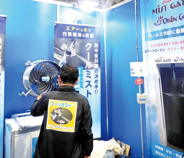 東横サポート(東京都町田市、山田一德社長)は、熱中症対策製品「クールミストLine」のウイルス対策バージョンとして「薬剤噴霧ゲート」を発表した。「展示会などのイベントの主催者から要望があったため、開発をした」(山田社長)。導入企業は工場の入り口などで天井から使用したい薬剤をボタン一つで毎分60―80ミリリットル(ノズル3台噴霧時)噴霧できる。「従業員に薬剤を噴霧するだけで、ウイルス対策をする。取り付けも簡単でコンプレッサーさえあれば低コストで導入できる」(同)。同社では併せて開発した持ち運びができる消毒用「ハンディタイプ」とともに製造業や食品などの各種工場や学校、幼稚園、医療機関、各種イベント会場などへの販売を目指す。