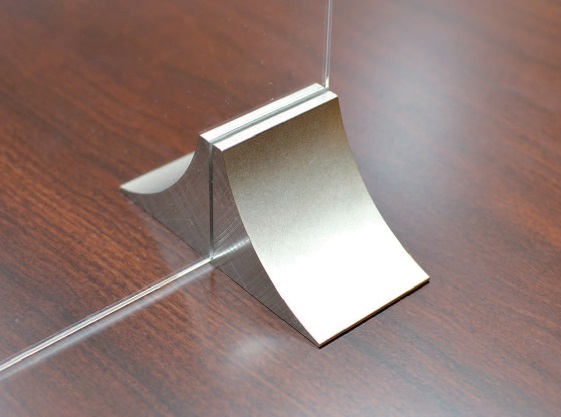 薄板加工販売やプレス加工、金型設計・製作などを行う西山鋼業(本社=東京都荒川区、西山寬社長)はこのほど、飛沫感染対策などに活用できる「アクリルパーテーション」を自社開発した。金型事業で培った技術を生かし、独自形状のスタンドを設計・製作。重心が安定して転倒しにくく、取り外し可能のため、除菌・清掃などのメンテナンス性に優れる。今月から開始した試験販売で好評を得ており、7月から本格的な販売に乗り出す。