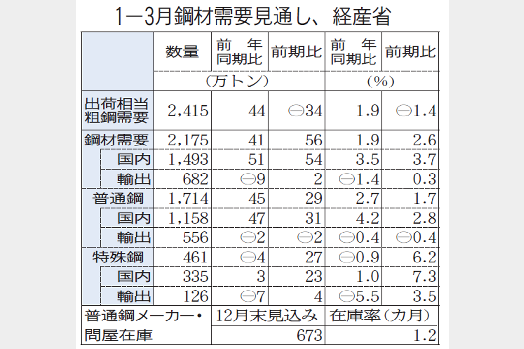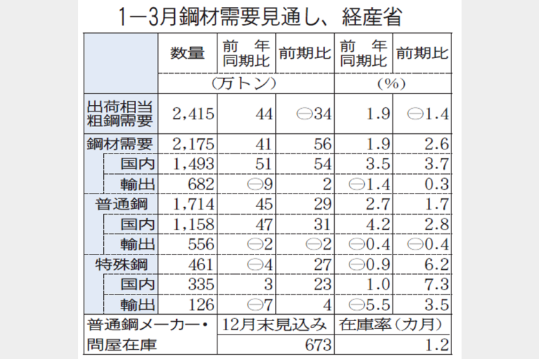 粗鋼需要2415万トン見通し 1―3月、フル生産続く