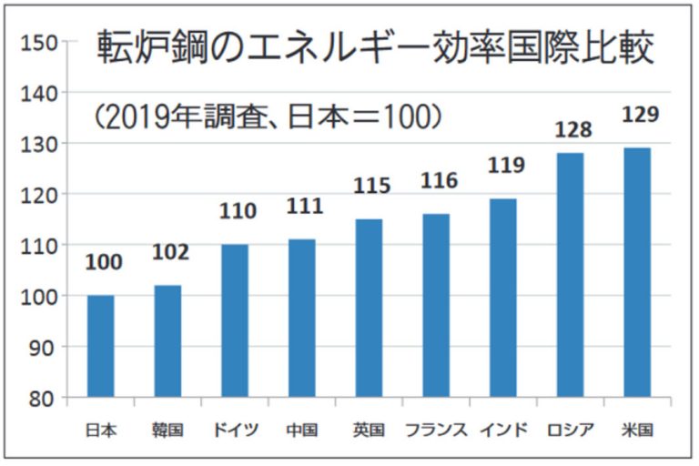 国内転炉鋼 19年時点エネ効率、世界最高維持 中・印改善、差縮める