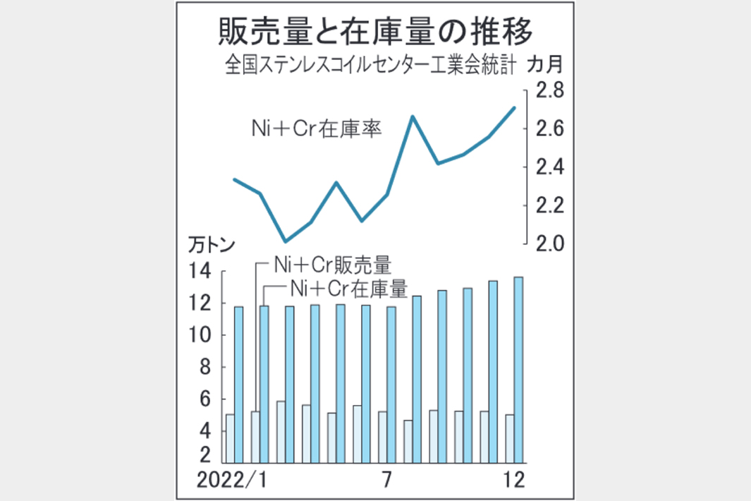 JSCA ステンレス販売4%減 22年過去最多輸入材入着量 4年ぶり在庫増