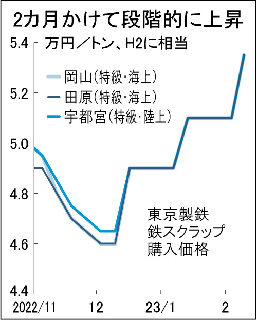鉄スクラップ大幅上伸 輸出に対抗、電炉買値上げ