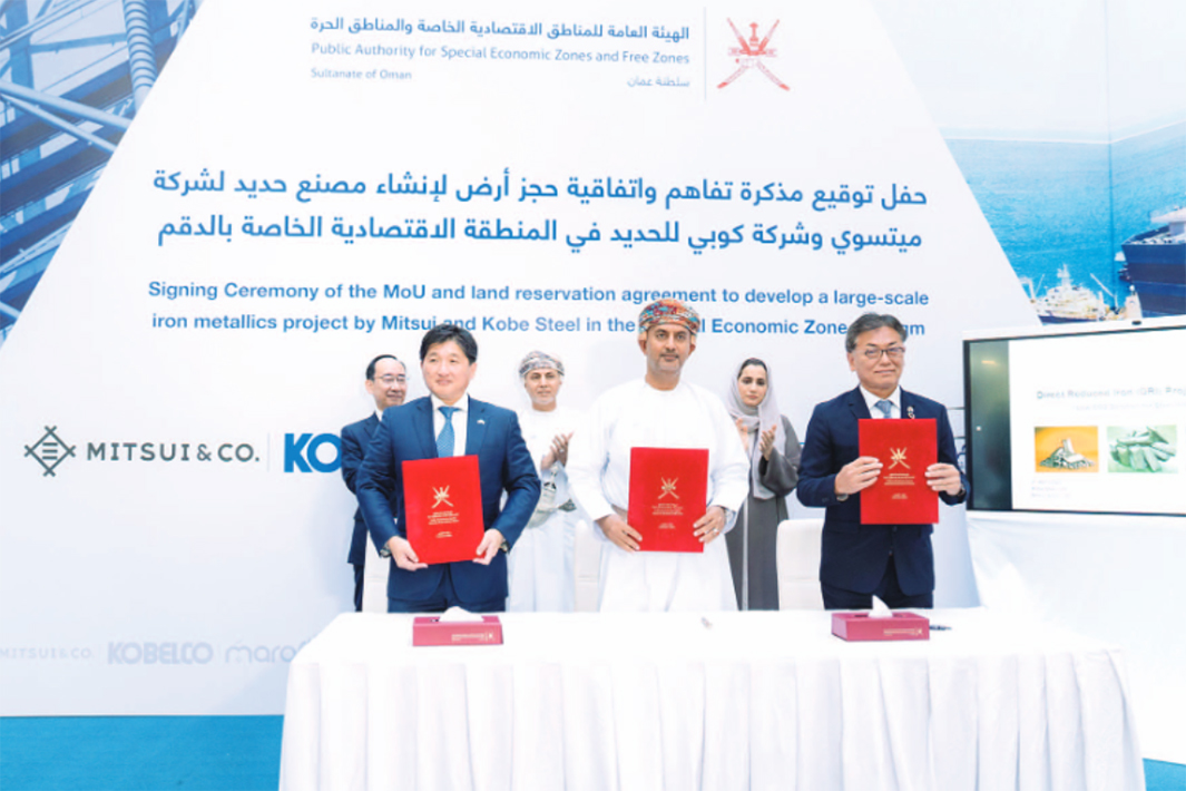 神戸製鋼所は10日、三井物産と検討してきたミドレックス方式の直接還元鉄(DRI)によるホット・ブリケット・アイアン(HBI)の事業用地に、オマーンの特別経済地区の土地予約契約を結んだと発表した。年産500万トンの製造拠点に向けて、天然ガス調達など諸条件を1年程度で詰める。早ければ2027年にも生産に入る。低炭素鋼材ブランド、コベナブル・スチールの鉄源を安定確保し、低炭素鉄源の外販、将来の水素還元方式への転換、生産規模拡大をにらむ。