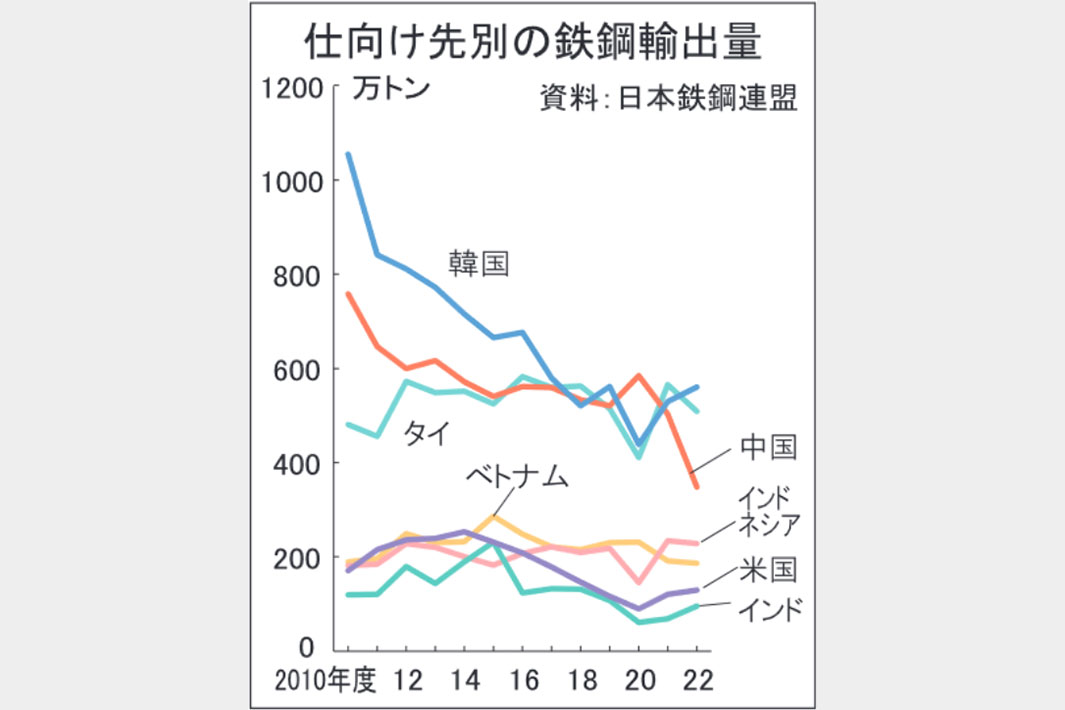 日本の鉄鋼輸出先コロナ前後で変化 米欧印向け堅調、中国大幅減 東南ア向けは濃淡