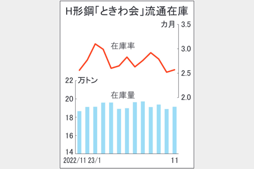 ときわ会 11月末H形鋼在庫19万台トン乗せ 前月比1.4%増 東名阪とも率はアップ