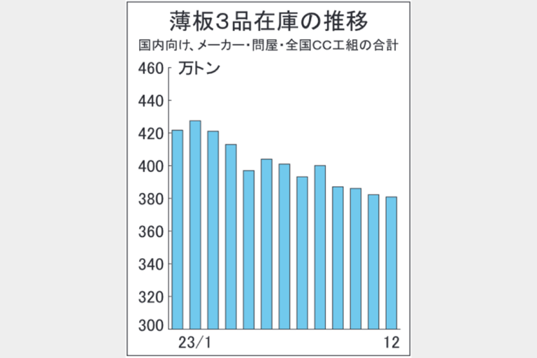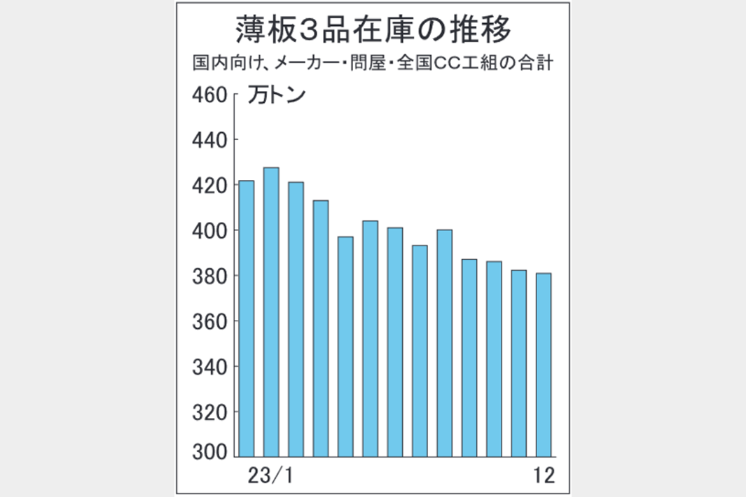 12月末薄板3品在庫4カ月減 減産見合い低水準
