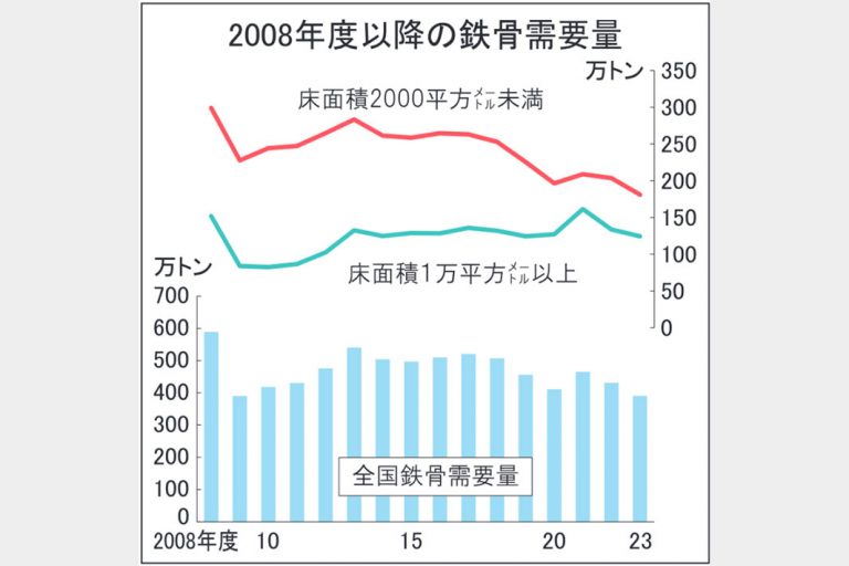 鉄骨23年度需要 中小建築向け最低181万トン 過去15年間で3割減水準に