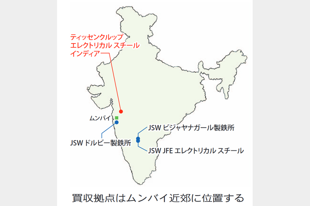 JFEスチールは18日、戦略パートナーのインド製鉄大手、JSWスチールと共同でインドの方向性電磁鋼板(GO)メーカーを買収すると発表した。買収先はドイツのティッセンクルップのインド子会社のティッセンクルップエレクトリカルスチールインディア(マハラシュトラ州ナーシク市)で、JFEとJSWが今年2月に共同設立したJSW・JFEエレクトリカルスチールを通じて行う。