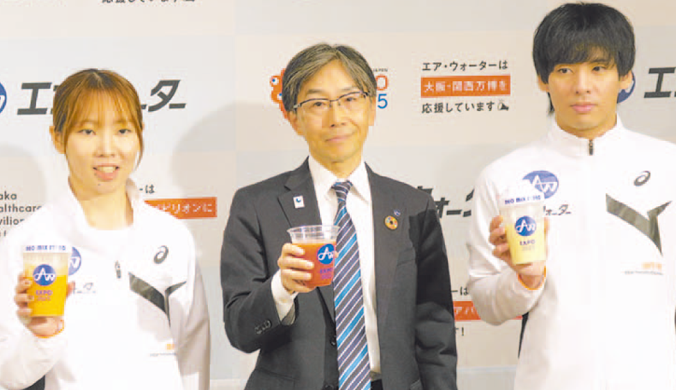エア・ウォーターは、2025年大阪・関西万博の大阪ヘルスケアパビリオンで大阪名物のミックスジュースをコンセプトにしたドリンクを販売する。23日に行われた記者会見では、松林良祐社長と大阪万博推進プロジェクト担当の和辻徹執行役員が出展概要などを説明した。