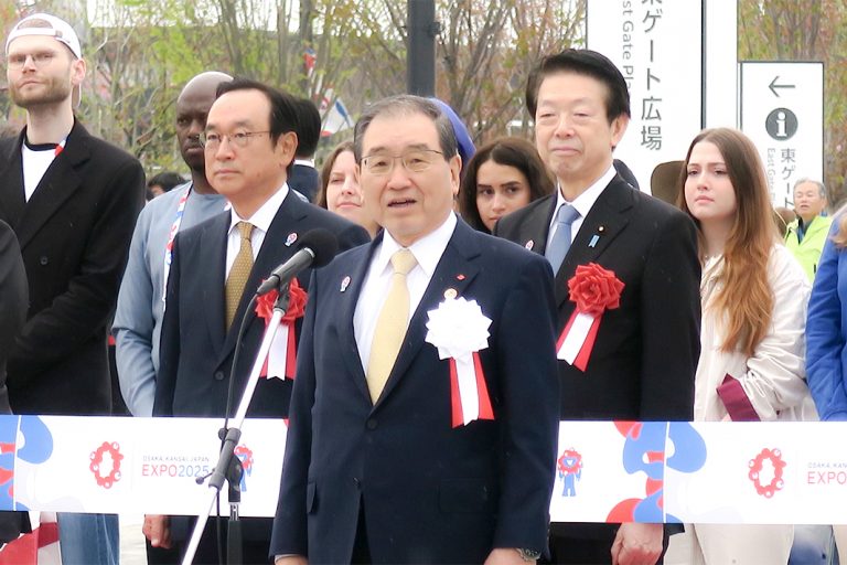 大阪・関西万博が13日に開幕した。会場の夢洲ではテープカットセレモニーが行われ、伊東良孝・万博相や武藤容治・経済産業相、中谷元・防衛相、吉村洋文・大阪府知事などが出席し、十倉雅和・日本国際博覧会協会会長(経団連会長)が開幕宣言した。開門の午前9時ごろには雨が止み、各国の代表団や関係者に出迎えられながら来場者は続々と会場に入っていった。