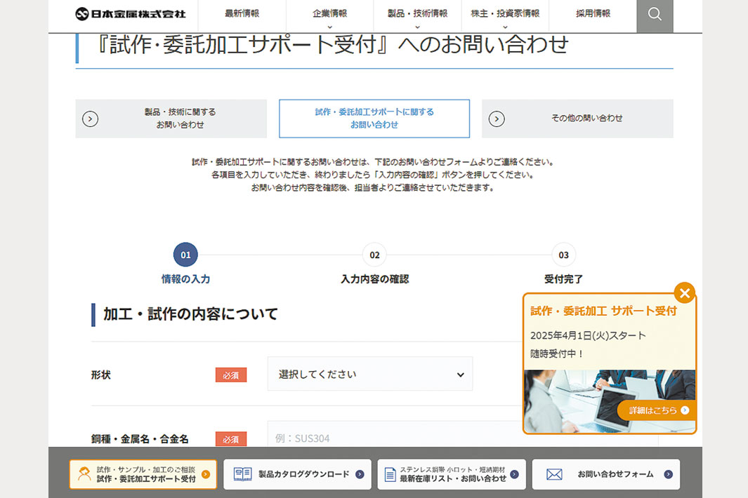 日本金属、受託加工を強化 試作問い合わせ増加